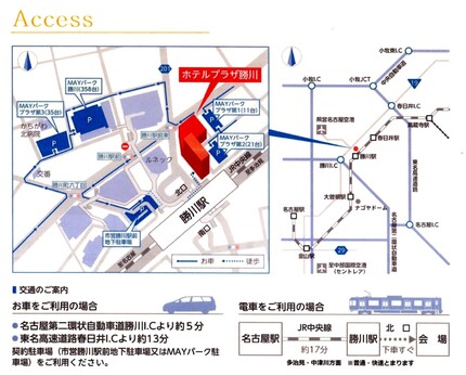 乗車し、6駅(約17分)の勝川駅下車、北口すぐの会場です。